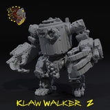 While most Klaw Walkers come armed with both melee and ranged weapons, some are built with the sole purpose of inflicting as much damage in close combat as possible. These brutal, melee machines are often seen charging head-first across the battlefield, allowing their crude armor to absorb small arms fire. Their cruel claws are ready to rip and tear the foe apart.