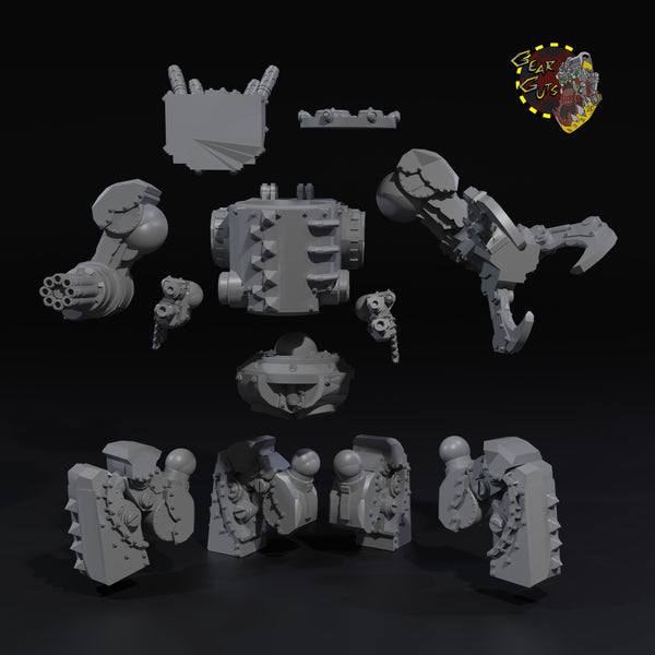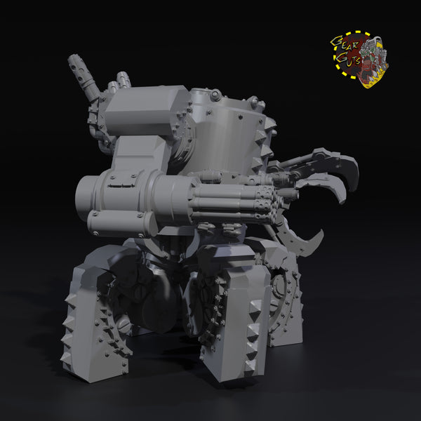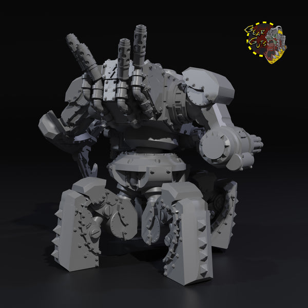 Bounding forward with heavy strides, Mega Walkers are used as mechanical battering rams. They are built to smash their way into the enemy line and deal as much damage as possible before the main force arrives.