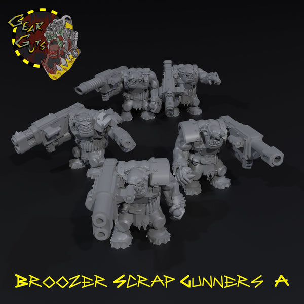 The Scrap Gunners mount their weapons upon their hulking shoulders, and lay down long-range fire support. These Broozers loot the best bits from the battlefield to add or replace parts on their prized weapons. These constant upgrades allow the Scrap Gunners to pursue their passion: creating the biggest "BOOM".