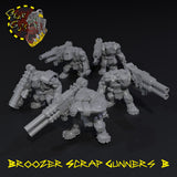 The Scrap Gunners mount their weapons upon their hulking shoulders, and lay down long-range fire support. These Broozers loot the best bits from the battlefield to add or replace parts on their prized weapons. These constant upgrades allow the Scrap Gunners to pursue their passion: creating the biggest "BOOM".