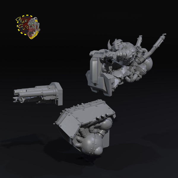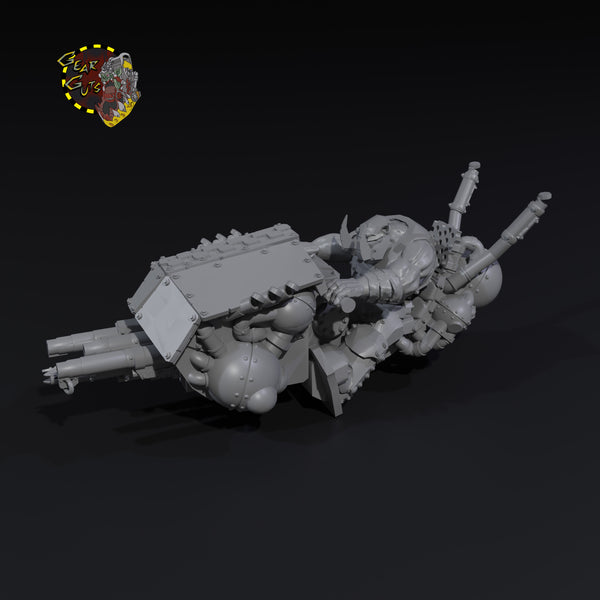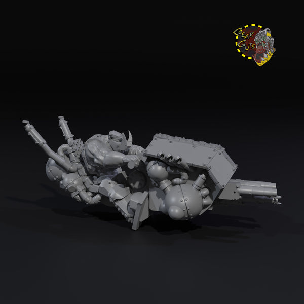 This Broozer Boss rides to battle with his engines releasing a guttural and deep roar. His bike hovers inches above the ground while its bulky frame remains capable of crushing anything in its path. It's no surprise that speed-loving Broozers flock to this Boss's banner.