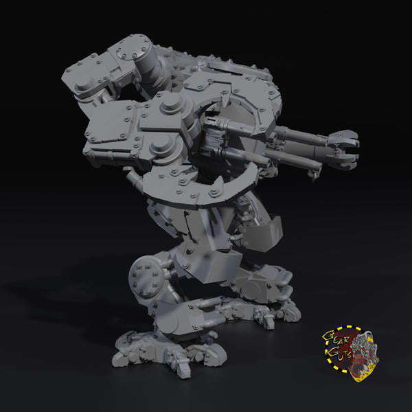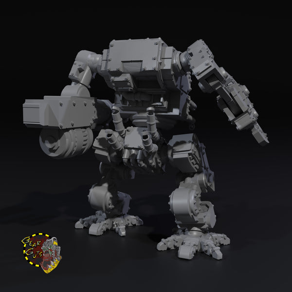 Bounding forward with heavy strides, Mega Walkers are used as mechanical battering rams. They are built to smash their way into the enemy line and deal as much damage as possible before the main force arrives.