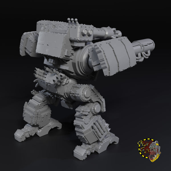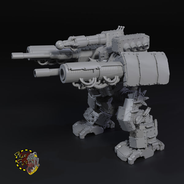 The Naut is a fearsome sight upon the battlefield. It is built to show the raw intimidation and strength of the Broozers. This armored mech is more than capable of shredding enemy infantry with its multitude of cannons, blasting entire squadrons to bits with its unrelenting firepower.